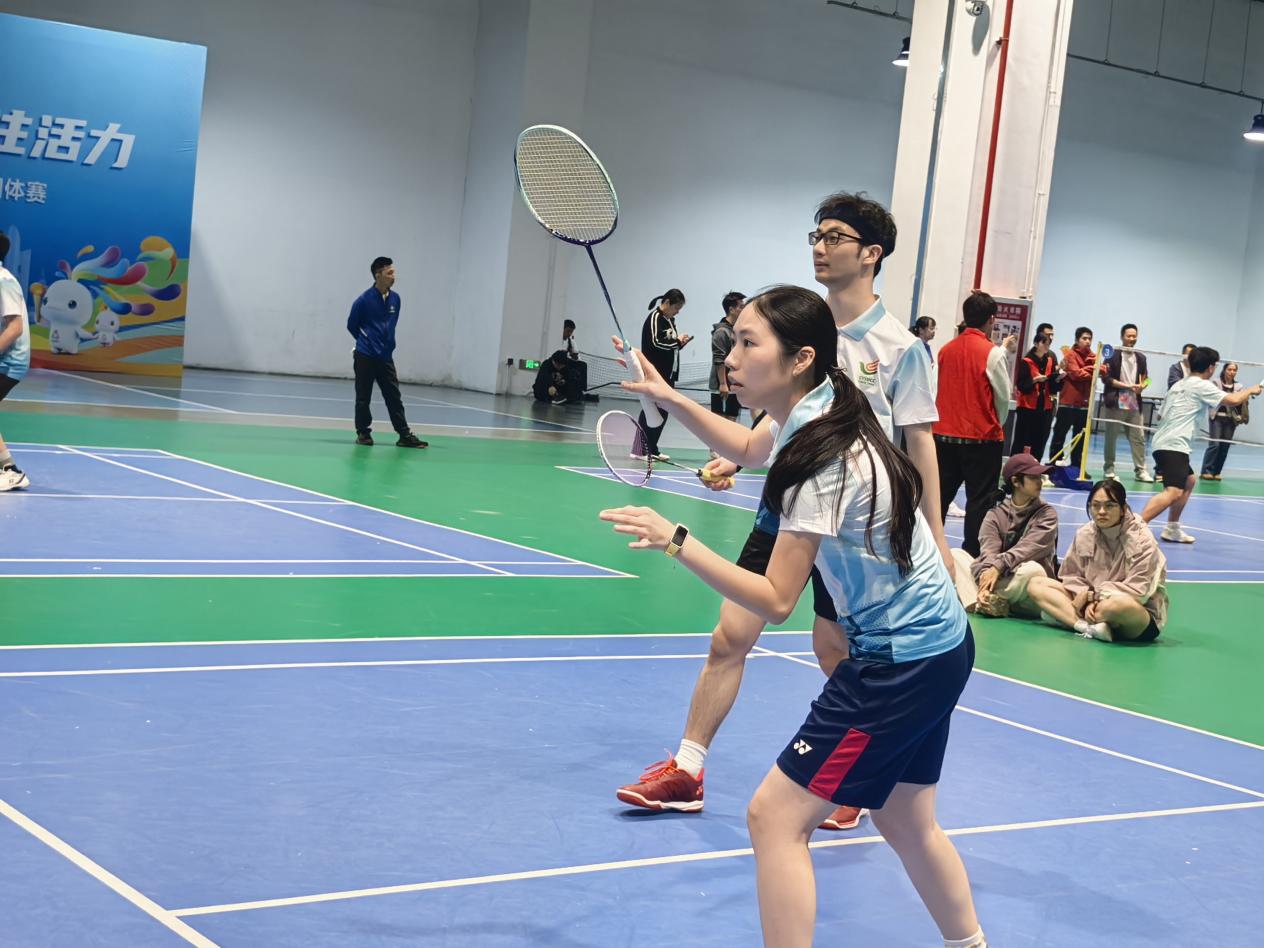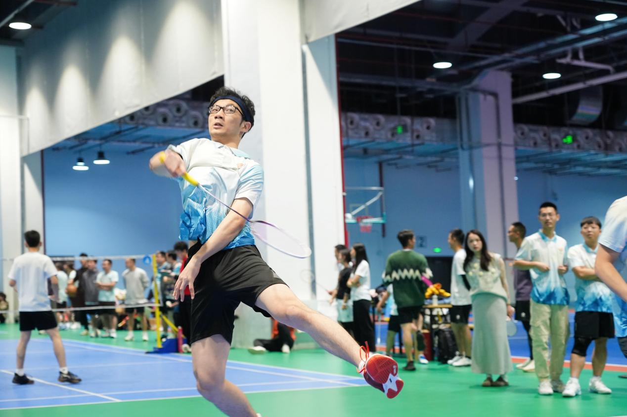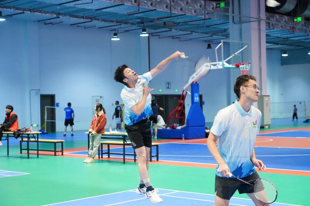本届赛事共集结17支劲旅,采取“小组积分制,男双-混双-男双”三局对决制,最终小组前两名晋级淘汰赛。中心羽毛球队第一场就迎战实力强劲、最终拿下亚军的知识城(广州)投资集团有限公司。首局,中心派出实力男双高磊与戚维天迎战对手主力,双方激烈对抗,几度上演精彩回合。虽以微弱分差惜败,但二人展现出出色实力和团队默契,为后续关键战役积蓄了力量。第二局混张颖宜与朱麒开局连丢6分落后,但两人迅速调整战术,通过网前精准勾球与后场有力进攻,顽强将比分追至19:17赢下首局。次局依旧胶着,关键球处理沉着冷静,最终以17:15再下一城,艰难但关键地扳回一分,为球队逆转战局注入强心剂。第三局再由陈家鑫、林佳煜两位主力搭档,以稳健的接发和犀利的进攻轻松赢下关键局,助力团队2:1逆转首场。