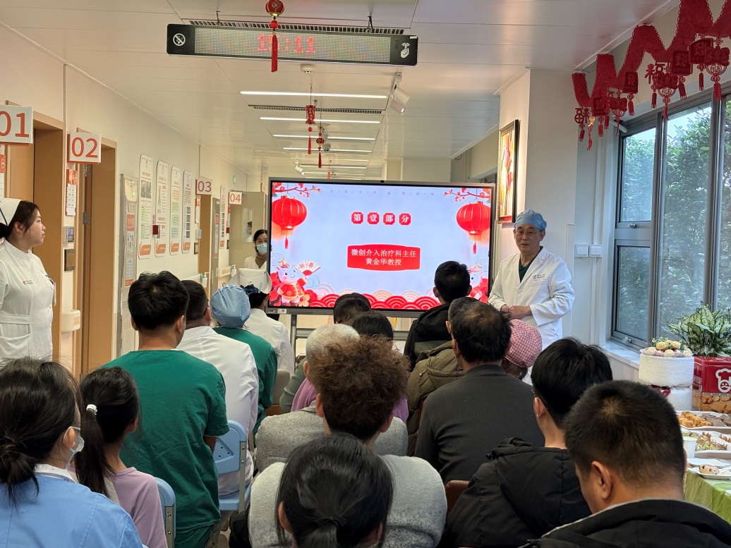 2月9日下午,微创介入治疗科师生党支部在微创介入治疗科三区举办了一场“医心暖春,趣享新年”的主题活动。党员医护人员与在院治疗的患者及其家属齐聚一堂,党员专家们面对面解答诊疗、护理、居家康复等问题。支部根据患者身体情况设计了小游戏、手工活等项目,让大家在参与中舒缓情绪、收获喜悦、体会年味。