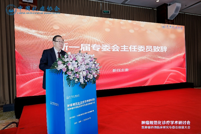 最后,第四届专委会新任主任委员张力教授发表讲话。他对协会及全体委员的信任表示感谢,并围绕学科发展目标、学术交流计划、人才队伍建设等方面阐述了新一届委员会的工作设想,号召全体委员凝心聚力、携手共进,推动中国抗肿瘤药物临床研究的发展。