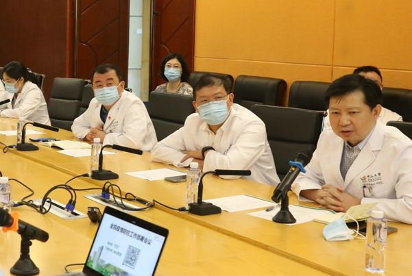 2021年8月23日,中山大学肿瘤防治中心召开全院疫情防控工作部署会议。会议传达了上级有关新冠肺炎疫情防控工作精神,并就做好有关工作进行了部署。会议以科室线上集中参会(50人内)为主与收看直播为辅的方式进行,全体师生员工、第三方驻场人员参加会议。徐瑞华院长、武少新书记、何韵副书记、孙颖副院长出席会议。会议由刘卓炜副院长主持。