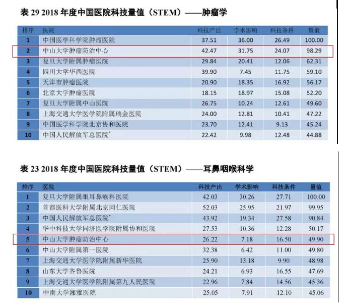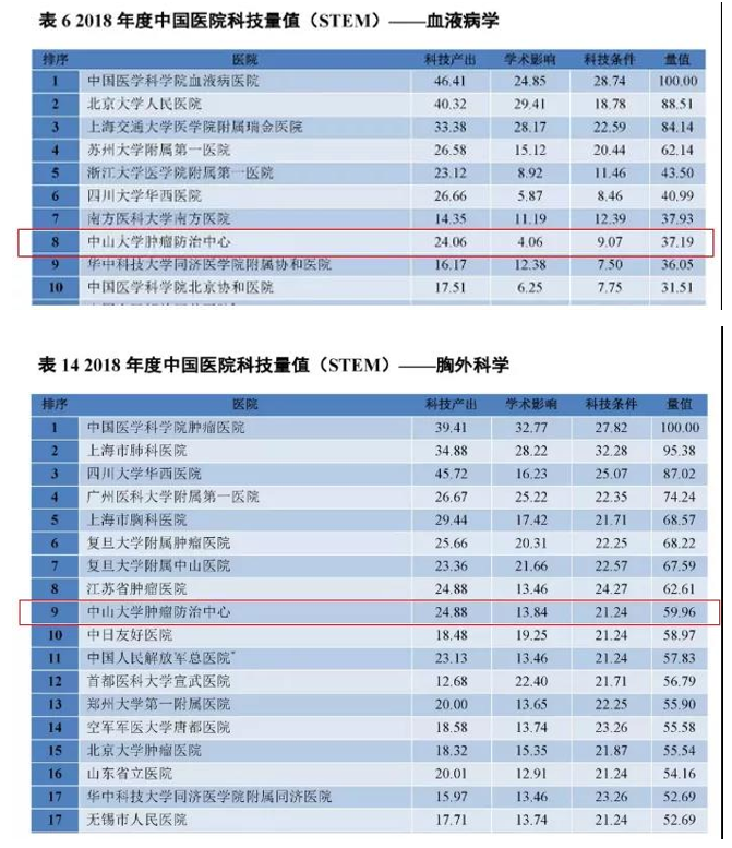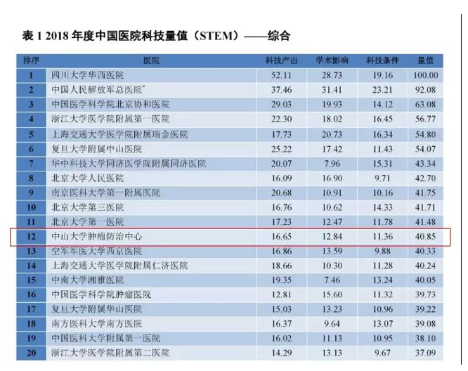 12月19日,“2019年(2018年度)中国医院科技量值”由中国医学科学院院长、中国工程院副院长王辰院士在京发布并解读。当日首次发布了中国医学院校科技量值!中山大学肿瘤防治中心在综合榜单上位列全国专科医院第1位,在全国医疗机构中列第12位,较上一年度跃升6位。另外,在学科科技量值榜单上,有五个学科进入全国前十。其中,肿瘤学排名第2位,耳鼻喉科学排名第5位,消化病学排名第6位,血液病学排名第8位,胸外科学排名第9位。