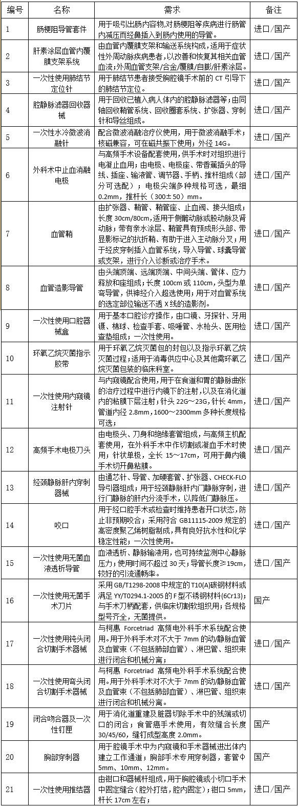 我院根据使用需求,对下列产品进行公开市场征集,邀请符合要求供应商报名参加。