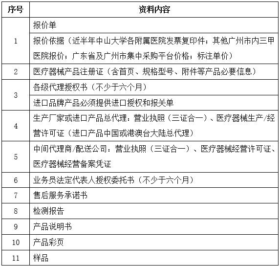 2.报名资料递交地点:广州市东风东路651号中山大学附属肿瘤医院2号楼负二层物流科办公室一。同时将附件:报价单及报价依据,可编辑的电子版发至邮箱,电子版报价表命名格式为“公司名称+耗材产品名称”。