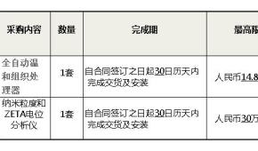 - 招标公告一、项目名称:中山大学附属肿瘤医院人体成分分析仪采购项目 二、项目编号:中肿设备[2019]002 三、采购预算及项目内容: 包号 采购内容 数量 完成期 最高限价 1 人体成分分析仪 2套 自合同签订之日起30日历天内完成交货及安装 人民币 49.10 万元 详细技术规范请参阅招标文件中的用户需求书,供应商必须对本项目的全部内容进行报价,如的缺漏,将导致报价无效。 现将该项目招标文件进行公示,公示期间为:2019年3月11日至2019年3月31日 四、供应商资格: 1、 具备《中华人民共和国政府采购法》第二十二条规定的条件;03-112019