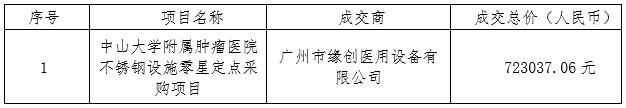 中山大学附属肿瘤医院不锈钢设施零星定点采购项目院内谈判成交公告
