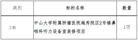 面包屑 首页 / 采购招标 / 采购结果公告 中山大学附属肿瘤医院越秀院区2号楼鼻咽科听力设备室装修项目院内询价成交公告 2022-03-28 一、项目名称 中山大学附属肿瘤医院越秀院区2号楼鼻咽科听力设备室装修项目二、中标(成交)信息 1.供应商名称: 广东埃纳生医学科技有限公司 ; 2.中标金额: 129218.50 元 。三、主要标的信息 四、公告期限 自本公告发布之日起1个工作日。五、凡对本次公告内容提出询问,请按以下方式联系。 1.采购部门:蔡老师87345047 2.监督部门:李老师87345580,钟老师87345581 中山大学附属肿瘤医院 2022.3.28 上一篇 下一篇 分享 最新动态
