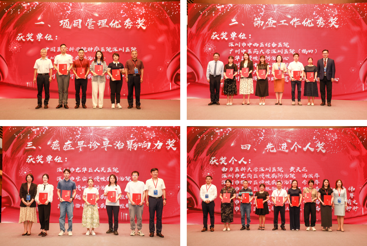 会议还表彰了在2024-2025年广东省城市癌症早诊早治项目做出突出贡献的15个单位及7个个人。