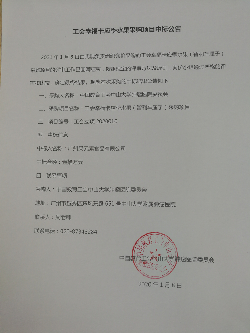 工会幸福卡应季水果采购项目中标公告