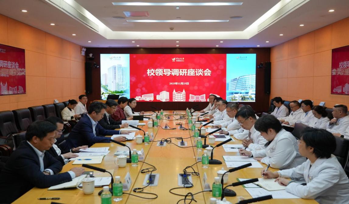 2025年11月25日,校党委书记刘承功一行调研中山大学肿瘤防治中心。图为调研座谈会现场。