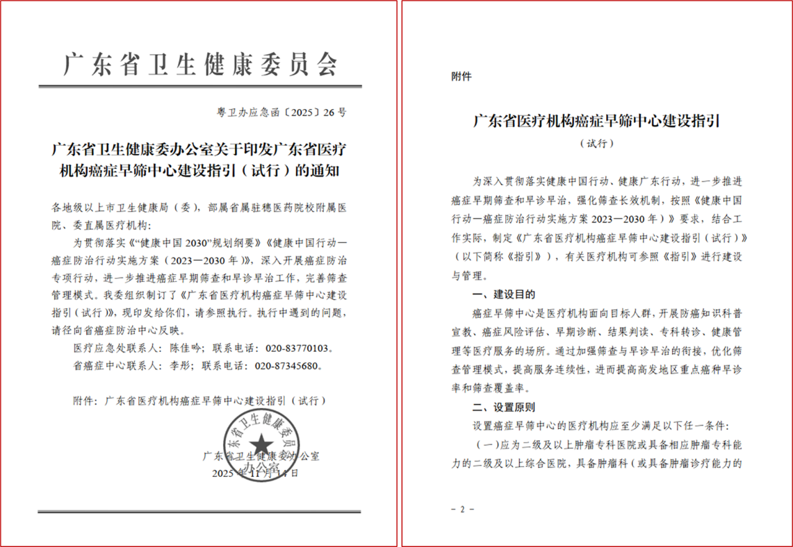 《广东省医疗机构癌症早筛中心建设指引(试行)》正式发布