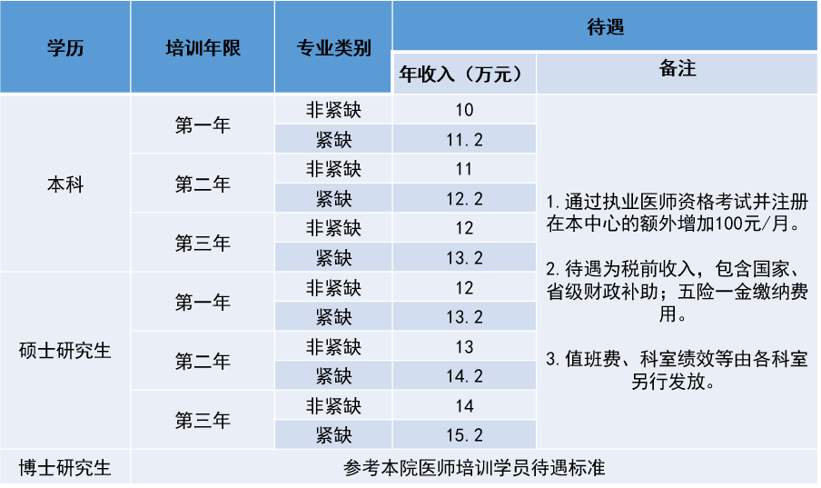 2.学员培训期间住宿自理,中心对社会化学员每人每月发放住宿补贴900元(已包含在年收入内)。参与临床值班将根据相关规定发放值班费。