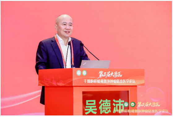 苏州大学附属第一医院吴德沛教授致辞,高度评价中山大学肿瘤防治中心的国际顶尖地位与突出科研成果,肯定其在徐瑞华院士支持下稳步发展,称赞本次论坛学术氛围浓厚、汇聚全国专家,期待大湾区及我国血液学事业持续蓬勃发展。