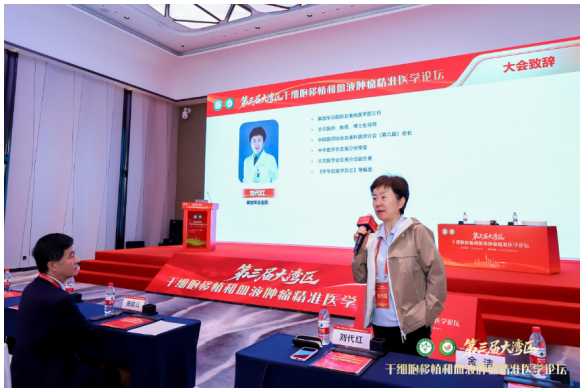 中华医学会血液学分会主任委员、华中科技大学同济医学院附属协和医院胡豫教授致辞,肯定我国造血干细胞移植规模全球领先、半相合移植成果显著,CAR-T治疗研究与原创产品达国际先进水平,提出大湾区应打造健康典范,借鉴中山肿瘤防治模式,推动区域血液学科高质量发展。