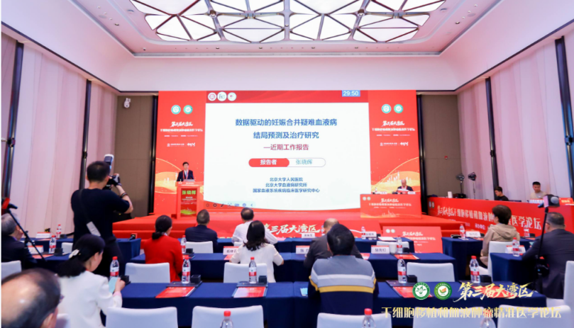 开幕式后进入大会报告环节。在吴德沛教授和胡豫教授的共同主持下,张晓辉教授以《数据驱动的妊娠合并疑难血液病结局预测及治疗研究》为题发表主旨演讲,系统介绍了团队以数据驱动方式开展的妊娠合并疑难血液病系列研究。内容涵盖妊娠合并ITP、急性白血病、MPN、骨髓衰竭性疾病及遗传性血液病等。重点展示了国际首个ITP产后出血(PPH)预测模型(MONITOR)、不同治疗方案的疗效比较、以及多中心队列研究结果,为妊娠期血液病的精准诊疗、风险预警和个体化治疗提供了重要循证依据。