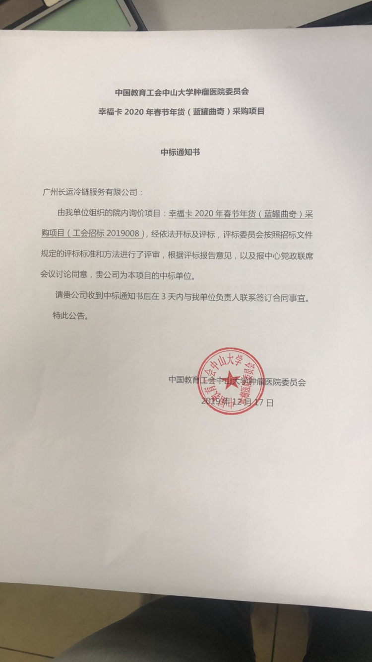 幸福卡2020年年货(蓝罐曲奇)采购项目-中标通知书