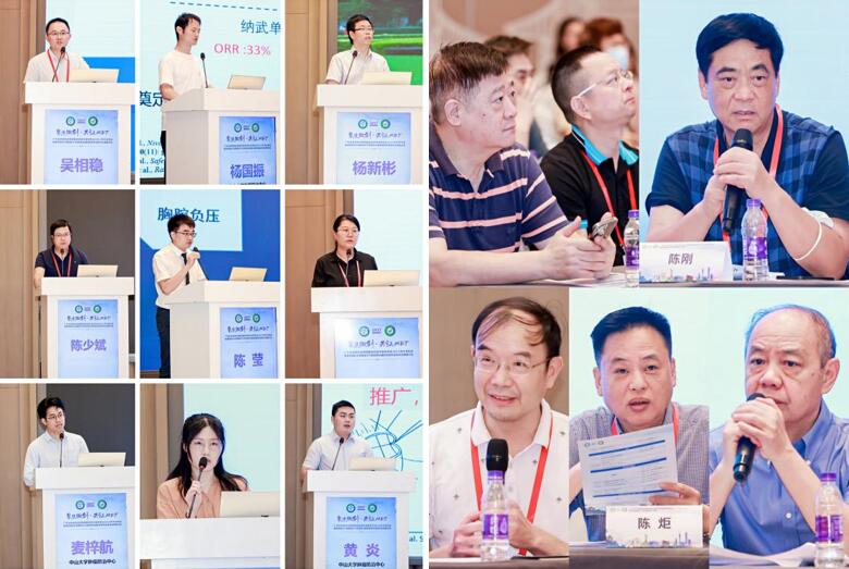 随后,胸外科和内科的专家教授们带来了关于食管癌免疫治疗的学术分享,广东省人民医院的乔贵宾教授分享了局部晚期食管癌术前诱导化疗联合免疫治疗的疗效预测,中山大学附属第一医院的程超教授介绍了PET/CT对新辅助化免疗效的预测价值,中山大学肿瘤防治中心的王风华主任医师介绍了食管癌的免疫治疗进展,中山大学肿瘤防治中心的张旭教授对比介绍了食管癌术前放化疗联合免疫治疗与食管癌术前化疗联合免疫治疗。食管癌的治疗正进入免疫治疗联合治疗的新时代,各专家教授的分享引起了现场专家学者的广泛兴趣和热烈讨论。