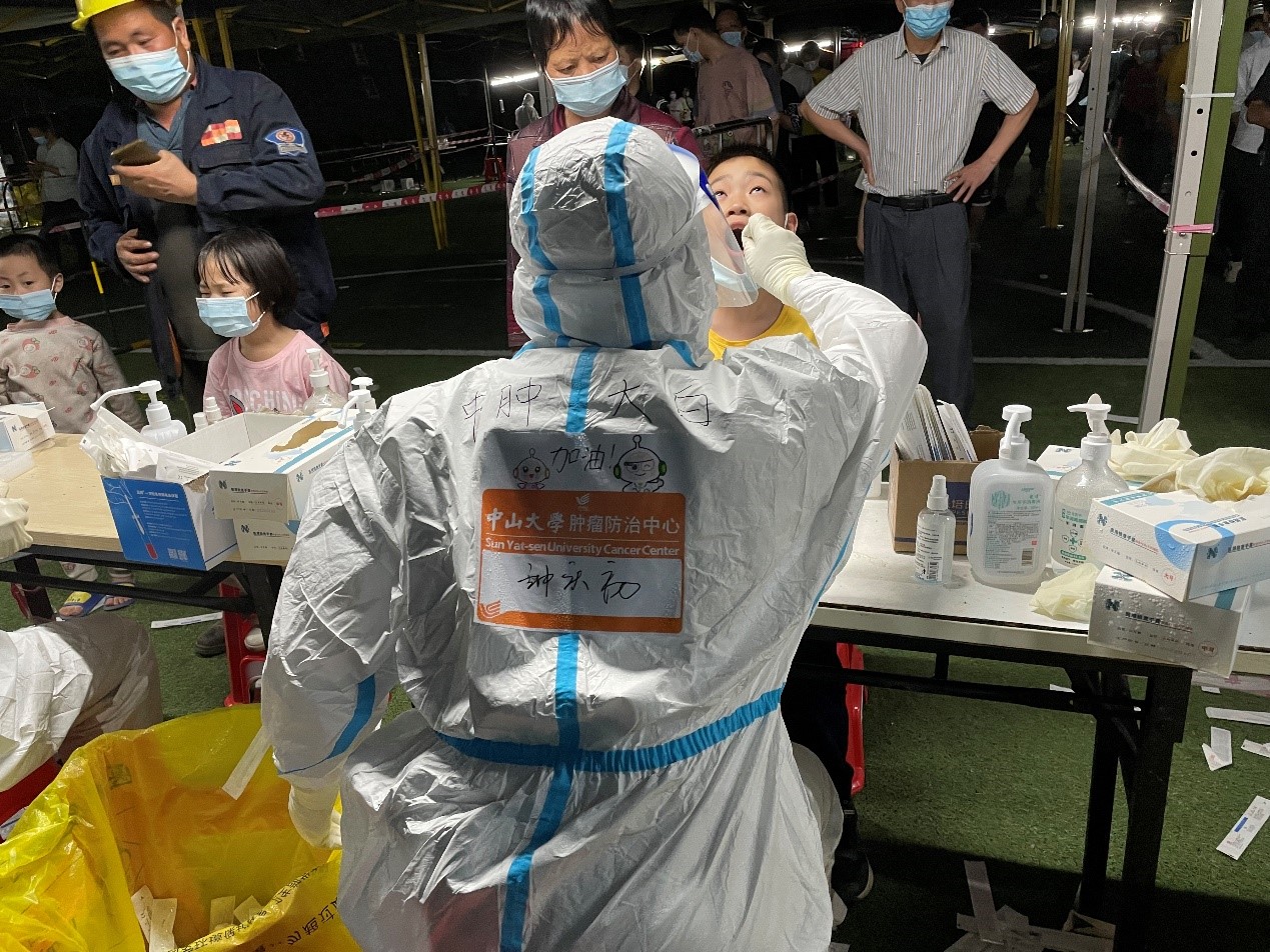 不久前,广州再次发生新冠肺炎疫情,放疗中心作为全院疫情防控的一部分,放疗科技术组闻令而动、迅速响应,共有24位同事报名核酸采样培训,新上岗的大白们次日便奔赴白云区,迅速进入核酸采样一线工作。