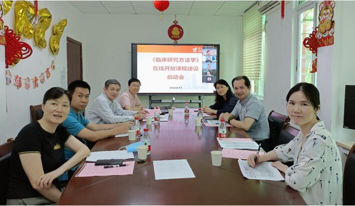 近年来,中山大学肿瘤防治中心深入落实立德树人根本任务,积极推进教育教学改革与创新,持续深化推进一流本科课程建设。2022年5月11日,为推动“金课”建设,中心临床研究方法学教研室经过前期筹备,采用线上线下结合形式,组织召开了《临床研究方法学》在线开放课程建设的启动会。