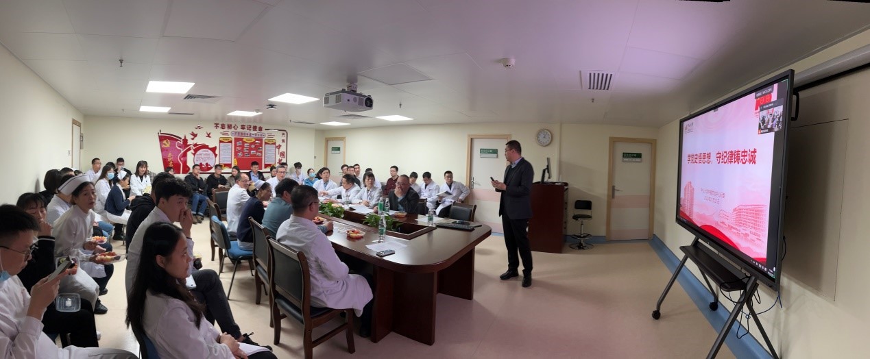 会议伊始,何韵副书记以“学党史悟思想,守纪律铸忠诚”为题进行专题讲座,他强调了纪律教育的重要意义,提醒各位党员应高度警惕变质、变色、变味的现实危险,筑牢拒腐防变的思想防线。他用鲜活的例子警示大家,无论是在生活中,还是在工作中,无论是懵懂的医学生,还是功成名就的专家教授,均应严格遵守纪律,不得逾越雷池半步。