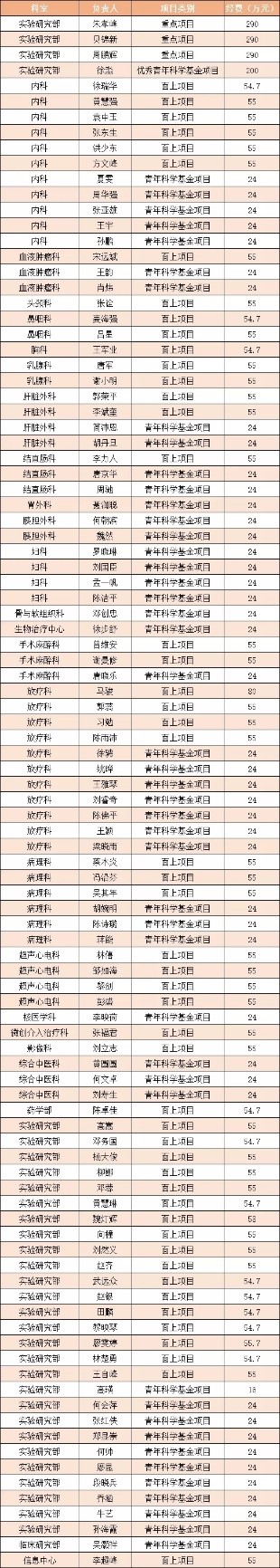 2019年,中肿共获国家自然科学基金67项,其中重点项目2项,优秀青年项目2项,重大研究计划培育2项,面上项目30项,青年科学基金项目31项,总计获直接经费为3277万元。