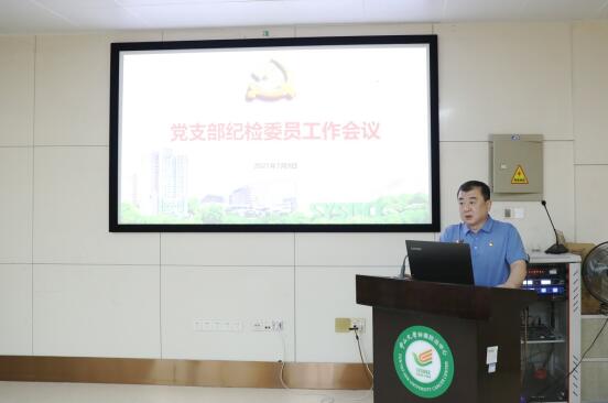 随后,何韵副书记为全体纪检委员做工作培训。他谈到,历史照耀现实,我们要从党史中汲取力量,加强纪律建设,健全中心党委统一领导、全面覆盖、权威高效的监督体系。接着,他介绍了中心“纪委委员、党支部纪检委员、专职干部”三支纪检监察队伍的相关情况,结合《关于加强监督工作的意见》,进一步明确了中心党委的全面监督责任、纪委的专责监督责任、各职能部门的职能监督责任、党(总)支部的日常监督责任、广大党员的民主监督责任。接着,何韵副书记介绍了纪检委员的主要职责以及需协助党支部书记重点开展的纪律教育、监督检查和谈心谈话的工作要求。