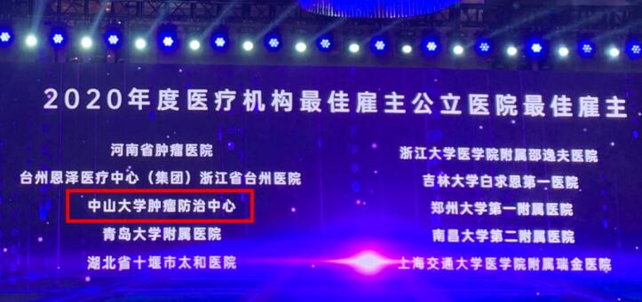 就在刚刚结束的2020年度医疗机构最佳雇主报告发布会上,中肿又双叒叕上榜啦!这是中山大学肿瘤防治中心连续第六年荣膺中国医疗机构最佳雇主。