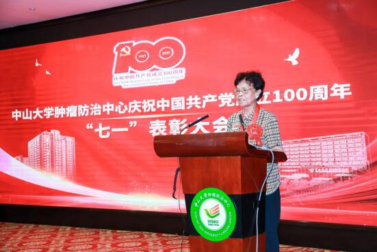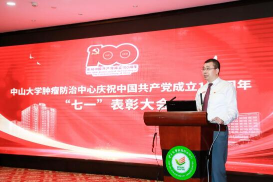 7月1日下午,为庆祝中国共产党成立100周年,中山大学肿瘤防治中心召开庆祝中国共产党成立100周年“七一”表彰大会。中山大学党委组织部副部长刘洁予同志,中山大学马克思主义学院博士生导师罗嗣亮教授,中心党委委员、纪委委员、领导班子成员,优秀党务工作者、先进党支部书记、优秀党员代表、老党员代表、新党员代表、共青团代表以及党外人士代表等近100人参加大会。