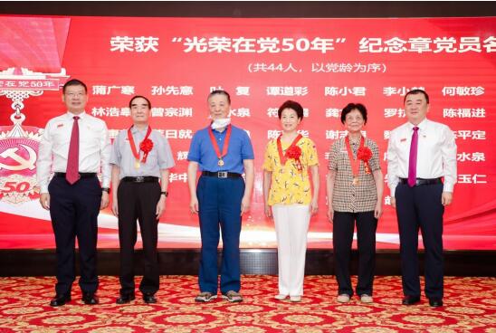 武少新书记、徐瑞华院长为老党员代表颁发“光荣在党50年”纪念章