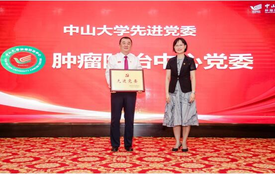 校党委组织部副部长刘洁予同志为中心武少新书记颁发了“中山大学先进党委”的奖牌