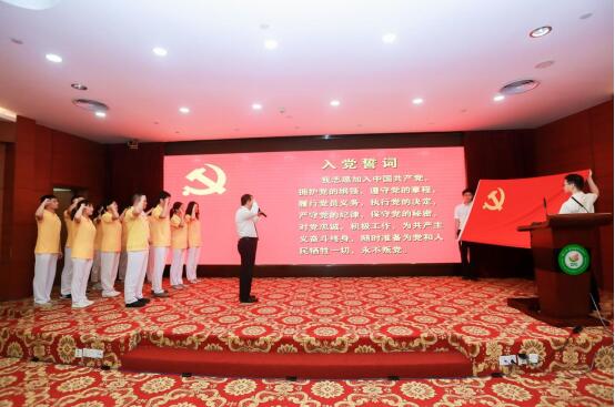 前辈事业薪火相传,中肿人昂首阔步踏上新征程。会上,武少新书记带领中心新党员代表,面对党旗,庄严宣誓:“我志愿加入中国共产党!”洪亮的宣誓声响彻会场,经久不息。全体在场党员也再次重温了入党誓词。