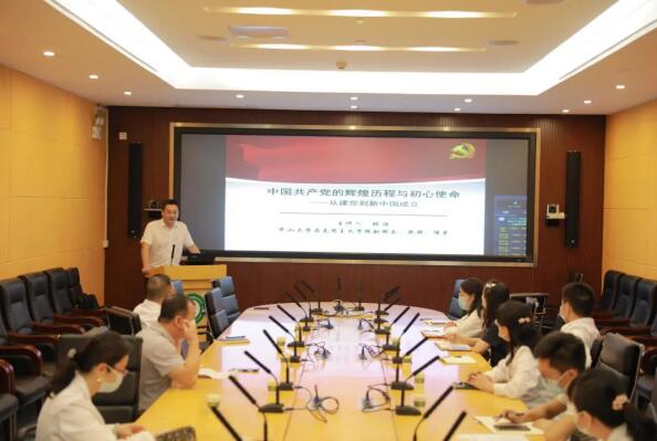 5月27日上午,肿瘤防治中心党委组织党史学习教育专题宣讲会,中山大学马克思主义学院副院长张浩教授受邀在中心越秀院区1号楼做专题党课宣讲。黄埔院区内同步进行视频直播。中心副处以上干部、各党支部支委代表等近60人参加了本次专题党课。