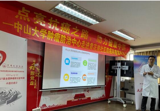 当日上午9:00分,活动正式开始。首先由中山大学肿瘤防治中心彭望清副院长致辞。彭副院长表达了对此次活动的肯定和以及美好祝愿,也希望通过此次活动可以提高社区群众的防癌、抗癌意识,增强自我保护能力,普及科学的防癌理念和方法,引导公众远离不良生活习惯,建立健康生活方式,实现对癌症的有效防控,从而进一步推动抗癌事业和科普工作的健康发展。