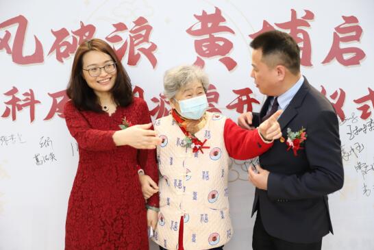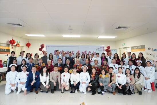 现场也有幸请到内科老一辈内科教授刘冬耕教授、周中梅教授、滕小玉教授共贺开区。内科和一期病区的年轻医护人员和进修医生代表为各位教授献上鲜花,感谢恩师多年的培养和谆谆教诲,感谢他们为中肿和广大病患的无私奉献,传承优秀的医脉文化,中肿的年轻人将沿着老师们曾经奋斗的足迹继续奋勇向前。