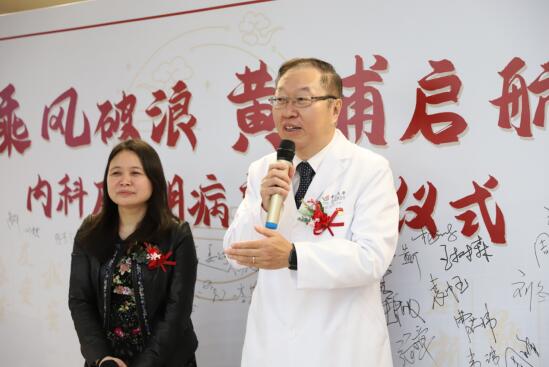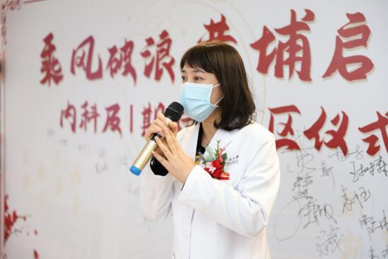 同心同力,共创辉煌。内科张力主任、临床研究部李苏主任正式宣布内科五区、六区、I期病区正式开区。两位主任分别代表内科全体员工感谢了各级领导对内科及临床研究部发展的大力支持,黄埔院区开区将为科室的发展和腾飞插上翅膀,更将为内科和临床研究部的深度合作、共同发展奠定坚实的基础。两个科室都将继续全力以赴,为黄埔院区的发展提供最强和最全面的支持,为实现两院区同质化管理团结协作,助力我院“三最一流”目标的建设,共同促进我国肿瘤内科及抗肿瘤新药研发的发展。
