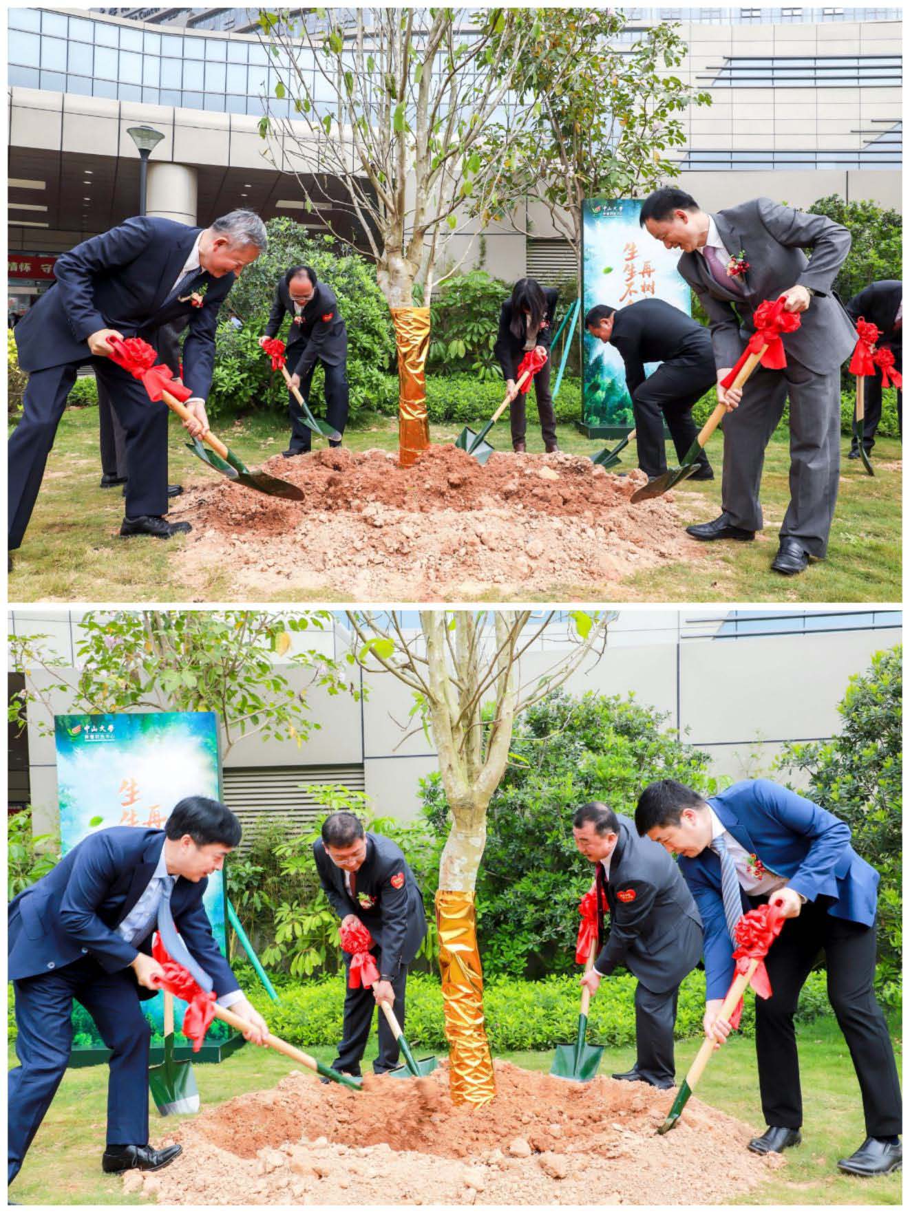 现场领导嘉宾走出黄埔院区医疗大楼,挥锹铲土,栽下红运玉兰。“生生不息,再‘树’新高”,嘉宾们祝愿中肿黄埔院区像玉兰树一样茁壮成长,枝繁叶茂,明天更加美好。