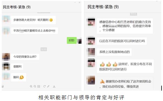 今年,中心通过信息化手段创新民主测评,建设线上测评系统,及时高效完成测评工作,让原本繁重的民主测评工作在弹指间就能完成,不但提升了干部评价过程中的满意度,而且测评结果自动汇总生成,统计结果准确、快速,整个民主测评工作的结果统计由原来十多位工作人员的大半天时间,压缩为三位工作人员20分钟内完成,开启了中心民主测评新模式,得到中心领导与相关职能部门的一致肯定和好评。