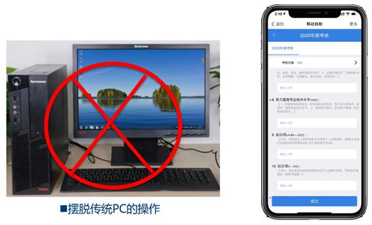 2021年1月初,中心正式开展2020年度年度考核工作,员工利用空余时间通过移动端快捷自助填报本人年度考核内容,打破了时间和空间的限制,15天内完成了3500多人的自评打分、自评总结工作,不仅提高了年度考核工作的效率,而且移动应用简单快捷,大幅提升了员工满意度。