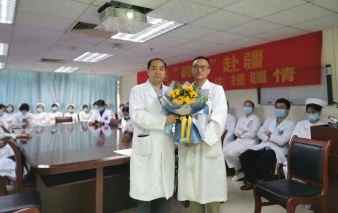 为了给黄鹤副主任医师加油打气,9月18日一大早,妇科全体同仁举办了简单又热烈的欢送会,“欢送‘鹤兄’援疆,一次援疆行,一生援疆情”的横幅俏皮又满含心意,绽放的向日葵更是寄托了大家对“鹤兄”的美好祝福。