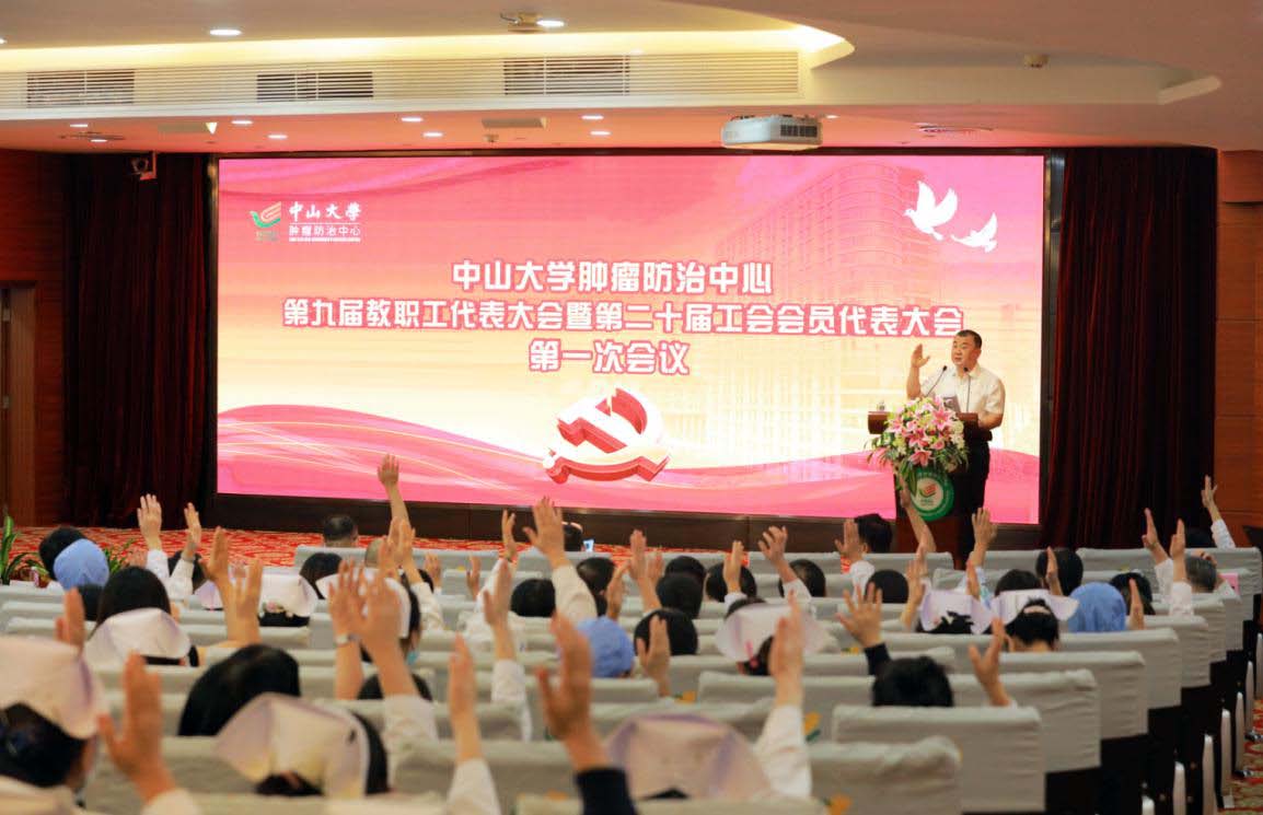 根据《中国工会章程》《中山大学二级教职工代表大会暨工会会员代表大会实施办法》《中山大学工会组织管理办法》《中山大学肿瘤防治心教职工代表大会暨工会会员代表大会实施办法》等有关规定,按照中山大学工会对中心工会按期换届选举工作的部署和要求,8月6日下午,中山大学肿瘤防治中心召开了第九届教职工代表大会暨第二十届工会会员代表大会第一次会议及第四届职代会常设委员会选举大会。