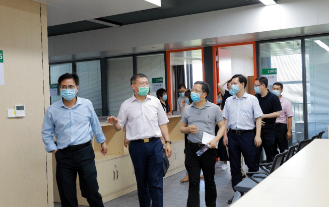 会后,调研组一行来到位于腾飞园的国家肿瘤学重点实验室视察实验室入驻工作进展。