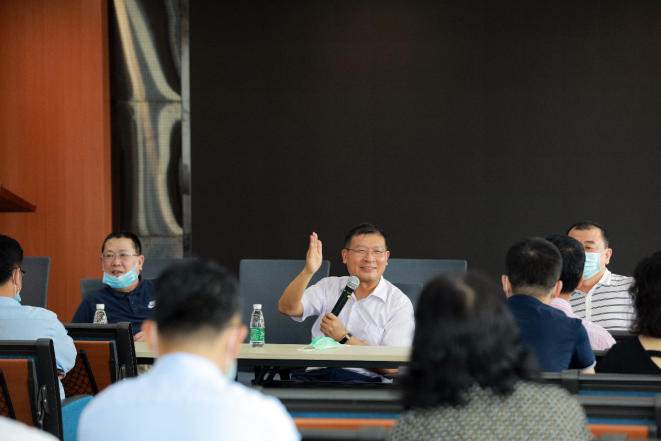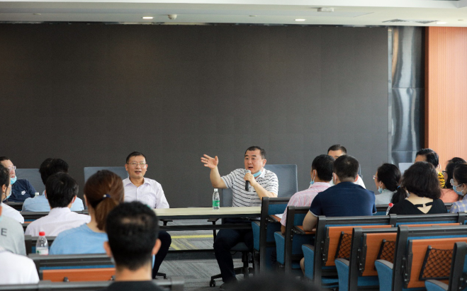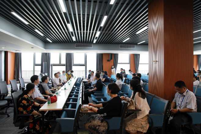 视察结束后,调研组在实验室学术报告厅与实验研究部准备进驻的青年学者们进行了亲切的会谈,对各位青年学者的工作和生活情况给予关心。徐院长和武书记表示,腾飞园国家肿瘤学实验室是黄埔院区的重要组成部分,中心将在黄埔院区的发展过程中,长期对腾飞园的国家肿瘤学重点实验室给予支持。