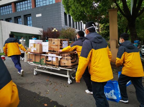 昨天中午,在协和医院西院,一行“中肿小黄人”利用休息的时间搬运防疫物资,这是在做什么?
