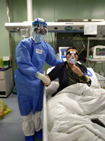 中肿驰援医疗队谢海彪护师积极地鼓励陈伯战胜疾病