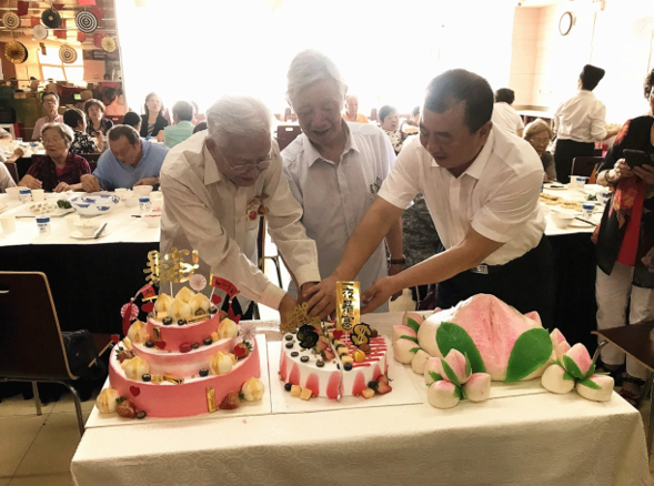 武少新书记向在座的老师们传达了三个好消息:一是徐瑞华院长作为观礼嘉宾参加70周年国庆阅兵仪式,他是广东赴京观礼的几名代表之一,这是中肿的骄傲;二是中心共有15位离休干部和专家获得由中共中央、国务院以及中央军委颁发的“共和国成立70周年纪念章”,这份沉甸甸的荣誉来之不易,体现出党和国家对中肿人专注医疗卫生事业所开展工作和所作贡献的充分肯定;三是在由广东省卫健委举办的关于“不忘初心 牢记使命”主题歌会中,我中心离退休队伍代表中心获得纪念奖。随后武书记向各位在场的前辈们送上祝福并与高龄智者一起切祝寿蛋糕。