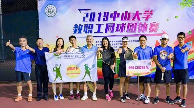 2019年10月19日,由中山大学主办第一届教职工网球团体比赛,本次比赛共有12支队伍参赛,我中心的郭翔教授、柳青教授、顾葆春教授、崔宝仪医生、谢间好主管护师和经秉中老师代表中山大学肿瘤防治中心参赛,与中山大学附属口腔医院联合组成 “中肿口腔联队”。