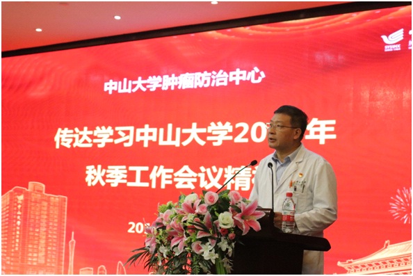 肿瘤防治中心徐瑞华院长稍后传达了中大秋季工作会议的精神,他同时指出,此次“不忘初心、牢记使命”主题教育活动意义重大、影响深远。主题教育活动是中心2019年以来的一件政治大事!希望全院上下通过这次活动,努力推进医院改革发展,以高度的政治责任感和使命感抓好医院各项工作。不忘初心,牢记使命,步伐坚定地推进中心“三最一流”建设。