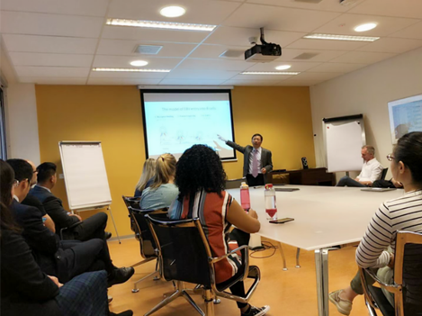 荷兰癌症研究所的访问交流结束后,曾副院长一行与在荷兰癌症研究所留学访问的中国留学生们交流座谈,曾院长向留学生们介绍中肿的研究平台模式与荷兰癌症研究所一致,两家单位都是基础与临床紧密结合,热忱欢迎优秀的留学生加入中肿。第二天曾院长一行来到莱顿,当天下午在莱顿大学附近的酒店举行华南恶性肿瘤防治全国重点实验室&莱顿青年学者交流会,来自莱顿大学及附近科研机构的30位中国留学生踊跃参加,曾副院长全面介绍了中心情况,重点介绍了华南恶性肿瘤防治全国重点实验室的研究方向和平台建设情况,研究部朱孝峰副主任、贝锦新研究员与在座的学子们进行深入交流,中肿在未来几年将从现有50位PI发展为150-200位PI的研究平台,欢迎优秀青年才俊加入。