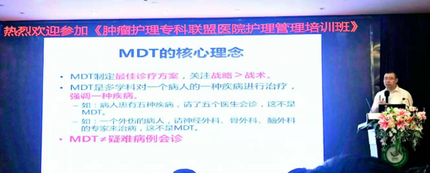 开班仪式后,何韵副书记讲授了第一课《以学科建设为导向的单病种MDT管理实践》,以生动、幽默、轻松的状态下把大家带入课程,就我院MDT发展概况、核心理念、流程、外界疑惑等等进行一一介绍。最终让同仁们深切感受到肿瘤患者的MDT会诊原则:战略大于战术,真正为肿瘤患者制定最佳诊疗方案,让与会护理同仁受益匪浅。