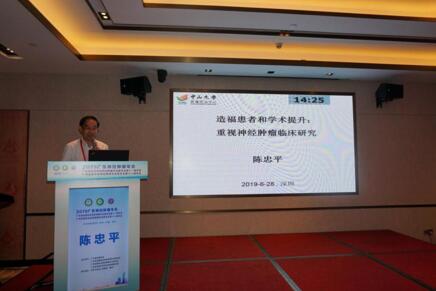 陈忠平教授作《造福患者和学术提升:重视神经肿瘤的临床研究》专题报告