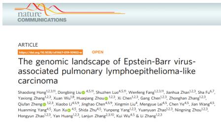 近日,中山大学肿瘤防治中心的张力教授团队与合作伙伴共同努力,在顶级学术期刊《自然-通讯》(Nature Communications)(最新影响因子:11.878)上发表了题为《EB病毒相关肺淋巴上皮瘤样癌基因组图谱》的原创论文,揭示了这种罕见肺癌的面纱的同时,也为发掘新的药物治疗靶点、优化治疗效果提供了重要的实验数据。